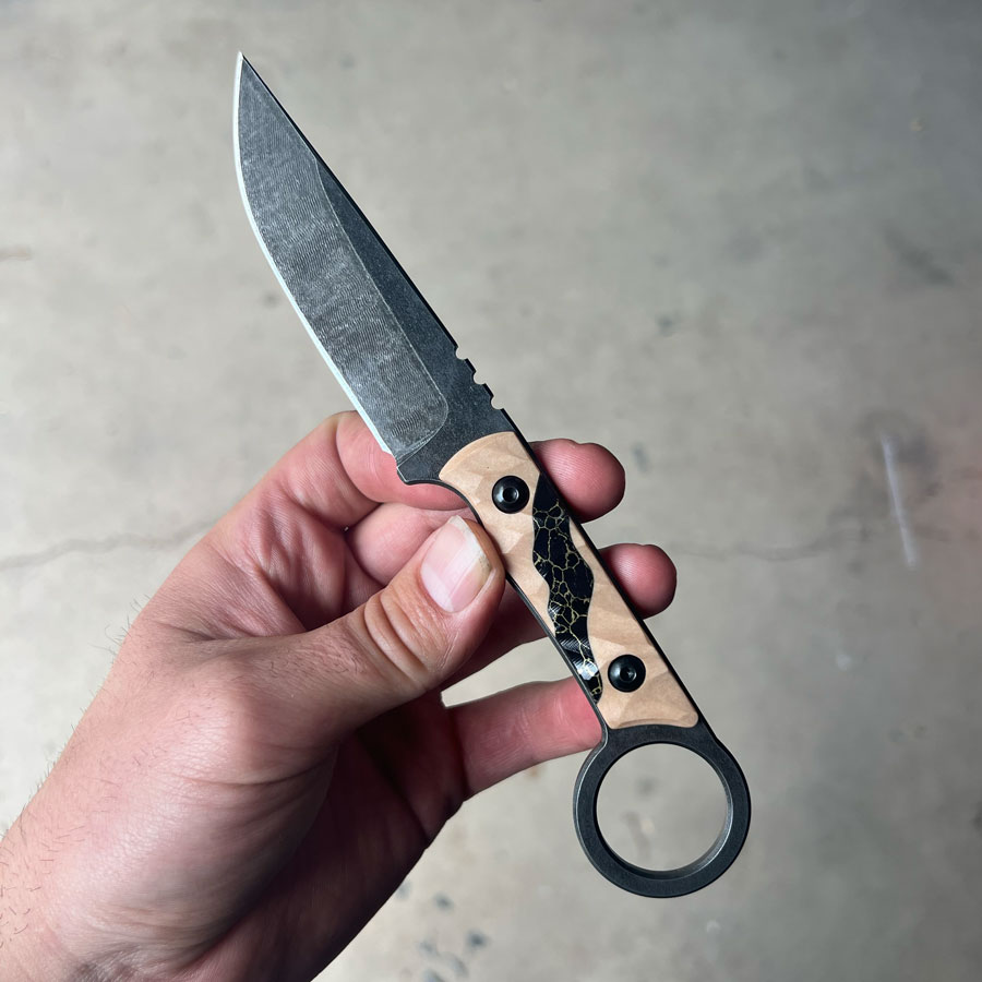 - Tan G10 Scales with Gold Webbed Black Stone Split