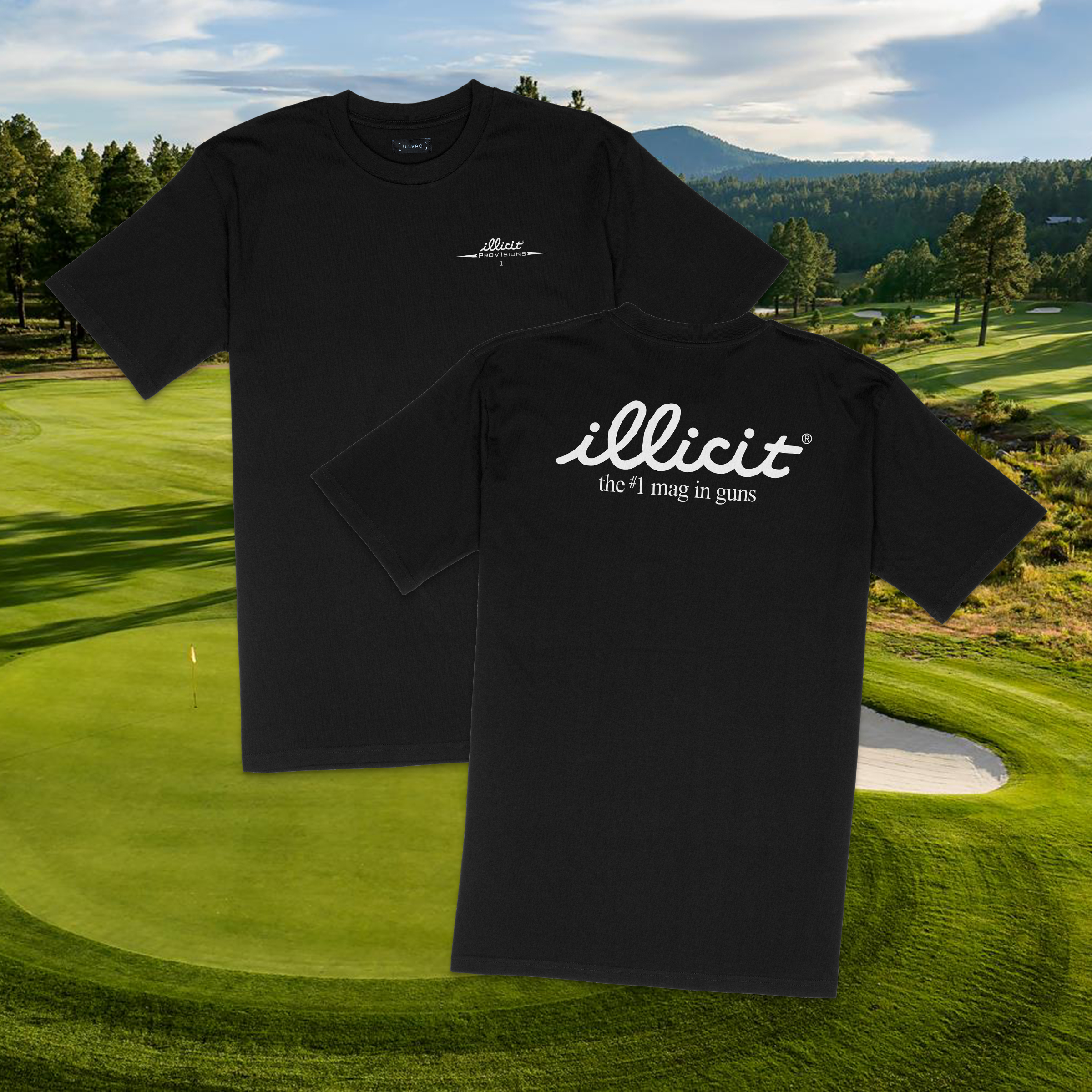Our ultra premium relaxed fit ‘golf tee’ black w/ white ink